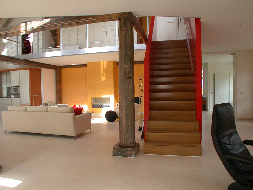 Het interieur is vrijwel volledig vernieuwd: geïsoleerde betonvloer met tegels en vloerverwarming, nieuwe verdiepingsvloer, nieuwe indeling badkamer en toilet.